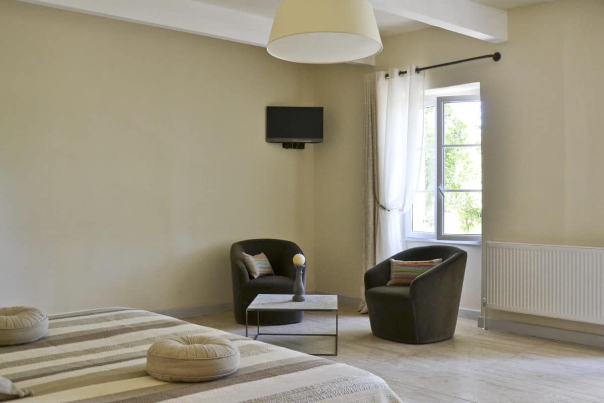 Aussi belle et élégante que l’étaient les déesses du royaume de l’Olympe, cette chambre haut de gamme dispose d’une vue plongeante sur la piscine et les champs d’oliviers. Dans cette chambre, vous disposerez d’un confort optimum grâce à un petit salon qui vous permettra de travailler en toute tranquillité.